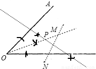 求作:點(diǎn)P,使得它到∠AOB兩邊的距離相等,且到M、N兩點(diǎn)的距離也相等.