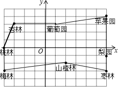 (2)葛亮同學(xué)利用暑假參觀了花峪村果樹種植基地(如圖).他從蘋果園出發(fā),沿(1,3),(-3,3),(-4,0),(-4,-3),(2,-2),(6,-3),(6,0),(6,4)的路線進(jìn)行了參觀,寫出他路上經(jīng)過的地方,并用線段依次連接他經(jīng)過的地點(diǎn),看看能得到什么圖形?