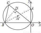 【答案】分析:連接AB,由圓周角定理知AB必過圓心M,Rt△ABO中,易知∠BAO=∠OCB=60°,已知了OA=,即可求得OB的長;