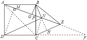 (2)連接CN,延長BN交CE于H,過點D作DM⊥AN于M,可證得Rt△ADM≌Rt△ABG,即得DM=AG,根據角平分線的性質可得CH=HE,即可證得△BCN≌△BEN,從而可知△CEN是等腰△,延長AE交DC延長線于F,可得∠BAG=∠BEG=∠CFE=∠BCN,則可證得Rt△DMN,Rt△BGN都是等腰直角三角形,問題得證.