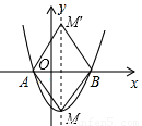 ∵頂點(diǎn)M關(guān)于x軸的對稱點(diǎn)是M′,四邊形AMBM′為正方形,