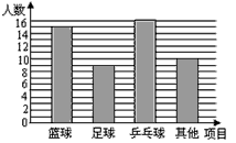 在大課間活動中,同學們積極參加體育鍛煉,小明就本班同學“我最喜愛的體育項目”進行了一次調查統(tǒng)計,下面是他通過收集數(shù)據(jù)后,繪制的兩幅不完整的統(tǒng)計圖.請你根據(jù)圖中提供的信息,解答以下問題: