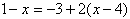 即-3x+1=-2x+8…②