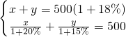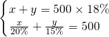 某校1999年秋季初一年級和高一年級招生總數(shù)為500人,計劃2000年秋季初一年級招生數(shù)增加20%,高一年級招生數(shù)增加15%,這樣2000年秋季初一、高一年級招生總數(shù)比1999年將增加18%.求2000年秋季初一、高一年級的計劃招生數(shù)各是多少?