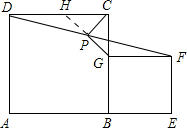 (2)首先作輔助線:延長GP交DC于點H,根據(jù)正方形與平行四邊形的性質(zhì),利用AAS易得△DHP≌△FGP,則有HP=GP,當(dāng)∠CPG=90°時,利用SAS易證△CPH≌△CPG,根據(jù)全等三角形與正方形的性質(zhì),即可得BG=GF,根據(jù)有一組鄰邊相等的平行四邊形是菱形,可得?BEFG是菱形,而∠EBG=90°,即得四邊形BEFG是正方形.
