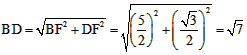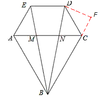 | (4)作DF⊥BC交BC的延長線于F, ∵∠BCD=120°, ∴∠DCF=60°, 在Rt△CDF中, ∴∠CDF=30°, ∴CF= ∴ 在Rt△BDF中, ∵BF=BC+CF= ∴ |