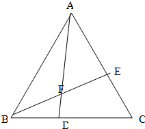 22、如圖,△ABC是等邊三角形,點D,E分別在BC,AC上,且BD=CE,AD與BE相交于點F.