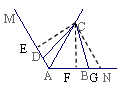 | 解:(1)證明:∵AC平分∠MAN,∠MAN=120°, ∴∠CAB=∠CAD=60°, ∵∠ABC=∠ADC=90°, ∴∠ACB=∠ACD=30°, ∴AB=AD= ∴AB+AD=AC。 |