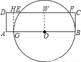 【答案】分析:過O作OW⊥CD,垂足為W,根據(jù)矩形的對稱性及垂徑定理即可求出EF的長.
