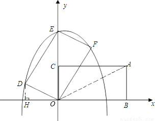 【答案】分析:(1)連接AO,過(guò)D點(diǎn)作DH⊥x軸于H,過(guò)F作FG⊥x軸于G,由AB=2,OB=2,利用勾股定理可求出OA的長(zhǎng),根據(jù)旋轉(zhuǎn)的性質(zhì)可求出E點(diǎn)的坐標(biāo);由銳角三角函數(shù)的定義可知∠AOB=30°,根據(jù)旋轉(zhuǎn)的性質(zhì)可判斷出△AOB≌△EOF,進(jìn)而求出F的坐標(biāo),同理可求出D點(diǎn)坐標(biāo).