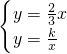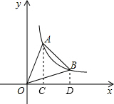如圖,直線y=6x,y=2 3 x分別與雙曲線y=k x 在第一象限內(nèi)交于點A,B,若S△OAB=8,則k= .