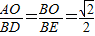 ∴△AOB∽△DBE(2分).
