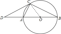 如圖,△ABC內(nèi)接于⊙O,AB是⊙O的直徑,∠B=30°,D是BA延長線上的一點,AD=AC=3,連接DC.