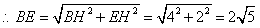 如圖,在梯形ABCD中,AD∥BC,∠A=90°,∠C= 45°, E是CD的中點(diǎn),AB=2AD= 4,求BE的長。