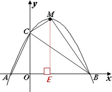 | (2)∵拋物線y=-x2+2x+3的定點為M ∴ ∴M(1,4) ∴過點M作ME⊥AB于E,則ME=4,OE=1, ∴BE=OB-OE=3-1=2,OC=3 ∴S△BCM=S△BOC=3。 |
