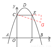 如圖,拋物線y=-x2+bx+c與x軸交于A、B兩點,與y軸交于點C,點O為坐標原點,點D為拋物線的頂點,點E在拋物線上,點F在x軸上,四邊形OCEF為矩形,且OF=2,EF=3,