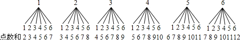 | 向上點(diǎn)數(shù) | 1 | 2 | 3 | 4 | 5 | 6 |