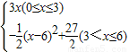 ∴y=PC•CD=3x(O≤x≤3)(3分)
