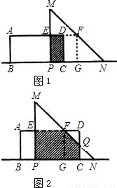 【答案】分析:(1)矩形的右移過程中,它和Rt△PMN之間重疊部分有兩種情況: