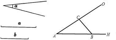 作法:1、以點(diǎn)A為頂點(diǎn),做∠OAH=∠α;