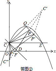 如答圖②所示,作點(diǎn)C關(guān)于直線QE的對稱點(diǎn)C′,作點(diǎn)C關(guān)于x軸的對稱點(diǎn)C″,連接C′C″,交OD于點(diǎn)F,交QE于點(diǎn)P,則△PCF即為符合題意的周長最小的三角形,由軸對稱的性質(zhì)可知,△PCF的周長等于線段C′C″的長度.