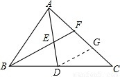 解答:解:過D作BF的平行線,交AC邊于G,如下圖所示:
