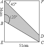 【小題1】丁丁想在一個矩形材料中剪出如圖陰影所示的梯形,作為要制作的風箏的一個翅膀.請你根據(jù)圖中的數(shù)據(jù)幫丁丁計算出BE、CD的長度(結果精確到個位,