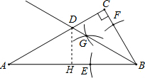 分析:根據題意可得BD是∠ABC的角平分線,再根據三角函數可算出∠A=30°,然后根據角平分線的性質可得DH=DC,再利用勾股定理計算出DH的長即可.