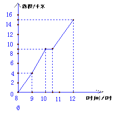 圖為一位旅行者在早晨8時從城市出發(fā)到郊外所走的路程與時間的變化圖。