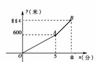 圖中由線段OA、AB組成的折線表示的是小明步行所走的路程和時間之間的關(guān)系,其中x軸表示步行的時間,y軸表示步行的路程.他從5分鐘至8分鐘這一時間段步行的速度是 ( )