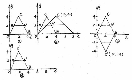 (3)在圖④中畫出由圖①中圖形向右平移3個(gè)單位后的圖形,并寫出此時(shí)點(diǎn)M,N對(duì)應(yīng)的點(diǎn)的坐標(biāo)。