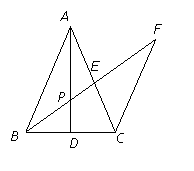 的中線,E是AD上一點,連結(jié)CE并延長交AB于點F。