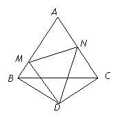 60°的角,它的兩邊分別與AB,AC交于點M和N,連結(jié)MN。