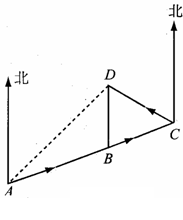 一列火車由A市途經(jīng)B、C兩市到達(dá)D市.如圖,其中A、B、C三市在同一直線上,D市在A市的北偏東45°方向,在B市的正北方向,在C市的北偏西60°方向,C市在A市的北偏東75°方向.已知B、D兩市相距100km.問(wèn)該火車從A市到D市共行駛了多少路程?(保留根號(hào))