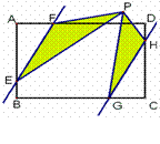 如圖,在矩形ABCD中,AD=6,AB=4,點E、G、H、F分別在AB、BC、CD、AD上,且AF=CG=2,BE=DH=1,點P是直線EF、GH之間任意一點,連結PE、PF、PG、PH,則△PEF和△PGH的面積和等于 .