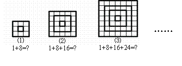 觀察下列圖形及圖形所對應(yīng)的算式,根據(jù)你發(fā)現(xiàn)的規(guī)律計算1+8+16+24+……+8n(n是正整數(shù))的結(jié)果為