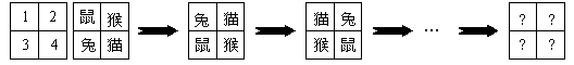 如圖,四個電子寵物排座位:一開始,小鼠、小猴、小兔、小貓分別坐在1、2、3、4號的座位上,以后它們不停地交換位置,第一次上下兩排交換位置,第二次是在第一次交換位置后,再左右兩列交換位置,第三次是在第二次交換位置后,再上下兩排交換位置,第四次是在第三次交換位置后,再左右兩列交換位置,…,這樣一直繼續(xù)交換位置,第2008次交換位置后,小鼠所在的座號是( ).