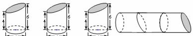 圖1是三個直立于水平面上的形狀完全相同的幾何體(下底面為圓面,單位:cm).將它們拼成如圖2的新幾何體,則該新幾何體的體積為 cm3.(計算結果保留