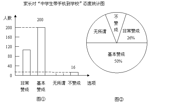 “校園手機”現(xiàn)象越來越受到社會的關(guān)注.小麗在“統(tǒng)計實習(xí)”活動中隨機調(diào)查了學(xué)校若干名學(xué)生家長對“中學(xué)生帶手機到學(xué)!爆F(xiàn)象的