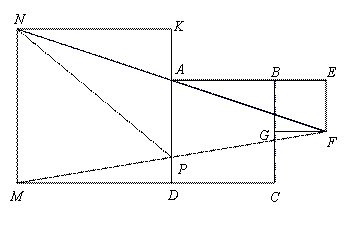 已知,在邊長為6的正方形ABCD的兩側(cè)如圖作正方形BEFG、正方形DMNK,恰好使得N、A、F三點(diǎn)在一直線上,聯(lián)結(jié)MF交線段AD于點(diǎn)P,聯(lián)結(jié)NP,設(shè)正方形BEFG的邊長為x,正方形DMNK的邊長為y,