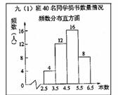 為了支援地震災(zāi)區(qū)同學(xué),某校開展捐書活動,九(1)班40名同學(xué)積極參與,F(xiàn)將捐書數(shù)量繪制成頻數(shù)分布直方圖如圖所示,則捐書數(shù)量在5.5∽6.5組別的頻率是( )