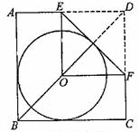如圖,O是正方形ABCD的對角線BD上一點,⊙O與邊AB,BC都相切,點E,F分別在AD,DC上,現(xiàn)將△DEF沿著EF對折,折痕EF與⊙O相切,此時點D恰好落在圓心O處。若DE=2,則正方形ABCD的邊長是( )