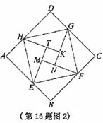 我國漢代數(shù)學(xué)家趙爽為了證明勾股定理,創(chuàng)制了一副“弦圖”,后人稱其為“趙爽弦圖”(如圖1)。圖2由弦圖變化得到,它是由八個(gè)全等的直角三角形拼接而成。記圖中正方形ABCD,正方形EFGH,正方形MNKT的面積分別為