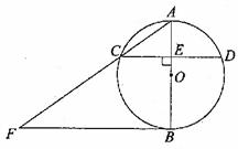 如圖,AB是⊙O的直徑,弦CD⊥AB于點(diǎn)E,過點(diǎn)B作⊙O的切線,交AC的延長線于點(diǎn)F。已知OA=3,AE=2,
