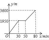 小穎和小亮上山游玩,小穎乘會(huì)纜車,小亮步行,兩人相約在山頂?shù)睦|車終點(diǎn)會(huì)合.已知小亮行走到纜車終點(diǎn)的路程是纜車到山頂?shù)木路長(zhǎng)的2倍,小穎在小亮出發(fā)后50 min才乘上纜車,纜車的平均速度為180 m/min.設(shè)小亮出發(fā)x min后行走的路程為y m.圖中的折線表示小亮在整個(gè)行走過(guò)程中y與x的函數(shù)關(guān)系.