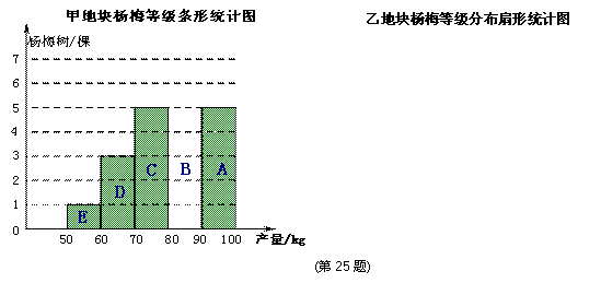 (3)若在甲地塊隨機抽查1棵楊梅樹,求該楊梅樹產(chǎn)量等級是B的概率.