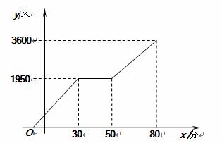 小穎和小亮上山游玩,小穎乘坐纜車,小亮步行,兩人相約在山頂?shù)睦|車終點會合.已知小亮行走到纜車終點的路程是纜車到山頂?shù)木路長的2倍,小穎在小亮出發(fā)后50 分才乘上纜車,纜車的平均速度為180 米/分.設小亮出發(fā)x 分后行走的路程為y 米.圖中的折線表示小亮在整個行走過程中y隨x的變化關系.