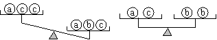 表示三種不同的物體,現(xiàn)放在天平上比較兩次,情況如圖所示,那么