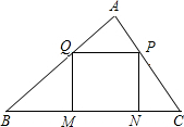 如圖,△ABC中,∠A=90°,AB=8cm,AC=6cm,MNPQ是△ABC內(nèi)接矩形,M、N在BC上,Q、P分別在AB、AC上,MQ:MN=4:5,求矩形MNPQ面積.