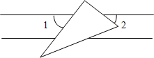 一塊直角三角板放在兩平行直線上,如圖所示,∠1+∠2=________度.